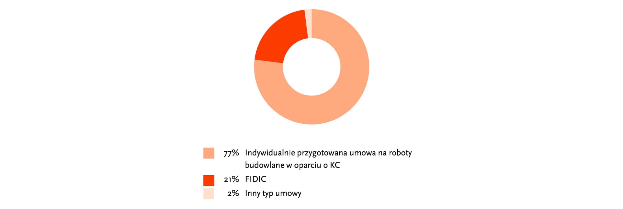 Respondenci wskazują umowy FIDIC jako generujące mniejszą ilość sporów niż umowy na roboty budowlane w oparciu o KC przygotowywane indywidualnie (odpowiednio 21% do 77% głosów Ankietowanych). Profesjonaliści doceniają wypracowane wzorce umowy wraz z pełna gamą możliwości, utworzone w oparciu o dobre praktyki zabezpieczające interesy stron umowy, przy mniejszym zaufaniu dla umów przygotowywanych jednorazowo dla indywidualnego zadania, często zabezpieczających interesy tylko jednej ze stron, co generuje powstawanie większej ilości konfliktów.