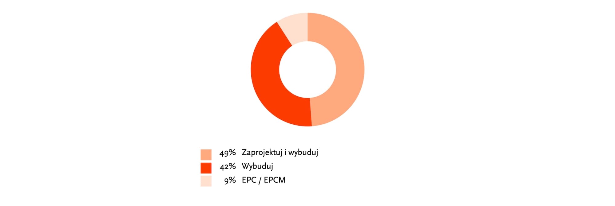 Profesjonaliści konsekwentnie, jak co roku, większy potencjał konfliktowy dostrzegają w umowach typu „zaprojektuj i wybuduj”. Można przypuszczać, że przeniesienie odpowiedzialności za jakość dokumentacji na Inwestora sprzyja zabezpieczeniu interesów Zamawiającego i skutkuje mniejszą ilością sporów, niż współpraca przy braku jasnego sprecyzowania zakresu zobowiązań przy często niejasnym opisie przedmiotu zamówienia, jednak wskazania Respondentów są dość zbliżone (49% wskazań „zaprojektuj i wybuduj”, 42 % wskazań formuła „wybuduj”).
