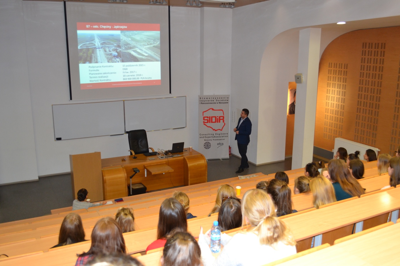Wystąpienie kończyła prezentacja działalności SIDiR oraz Koła Młodych Profesjonalistów. Punktem wzbudzającym największe zaciekawienie wśród studentów była prezentacja działalności Koła, w tym organizacja szkoleń, warsztatów, seminariów, wycieczek szkoleniowo-technicznych oraz Krajowego Konkursu dla Młodych Profesjonalistów.