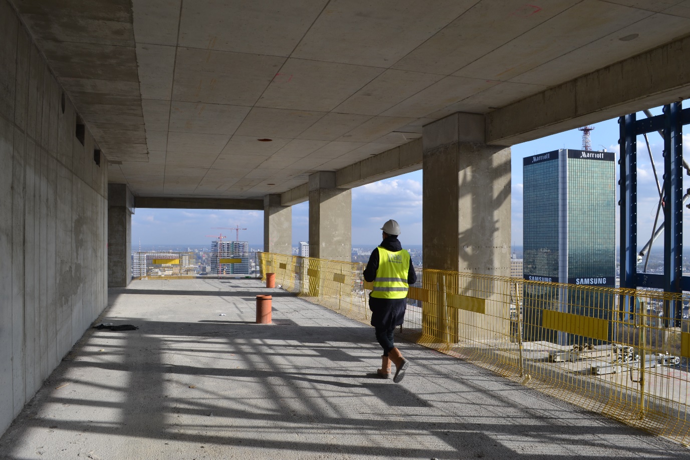 W celu zachowania bezpieczeństwa podczas wizyty na placu budowy Varso Tower uczestnicy wycieczki zostali podzieleni na dwie grupy. Pierwsza grupa w składzie studentów z Niemczech o godzinie 10:00 rozpoczęła zwiedzanie nowobudowanego wieżowca, której przewodził Pan Krzysztof Gniadzik.